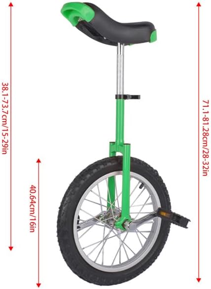 STRONG AND DURABLE: The thickened steel frame&wheel rim can resist break, vibration, and corrosion. The stainless steel screws and bearing are anti-rust. And the wear-resistant rubber wheel and PU seat can resist shock and deformation. Meanwhile, the wheel can prevent leakage after inflation ADJUSTABLE DESIGN: The clamp on the seat post allows you to easily adjust the product's height from 28'' to 32'', making this product suitable for people of different heights (within 3.9-5ft) SAFE TO RIDE: The rubber wheel with protruding points and pedals with anti-slip patterns can prevent slipping and you can grab the handles at the front and rear of the seat to ensure good stability during the riding process COMFORTABLE RIDING EXPERIENCE: The curved PU seat with different heights at both ends is soft and fits the hips well, providing you with a comfortable riding experience. Meanwhile, the silent bearing does not produce much noise to create a quiet riding environment EASY STORAGE: It has a small size and you can put it against the wall or in the corner, or detach it for easy storage